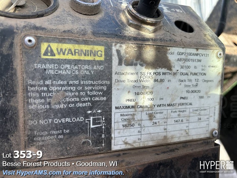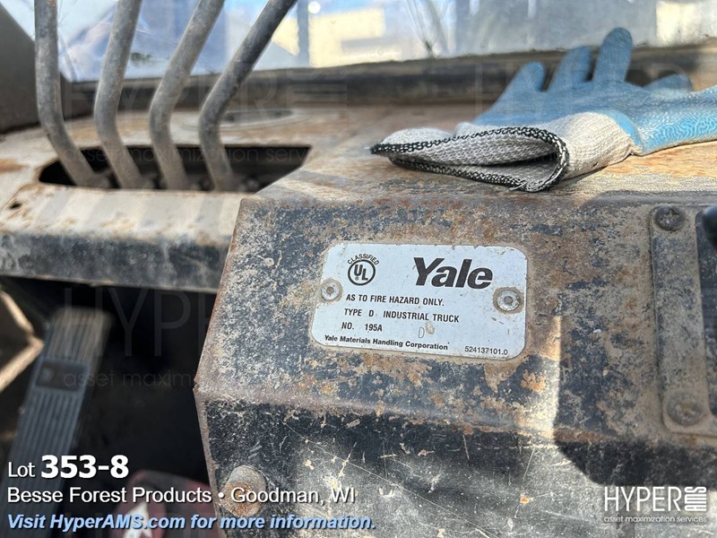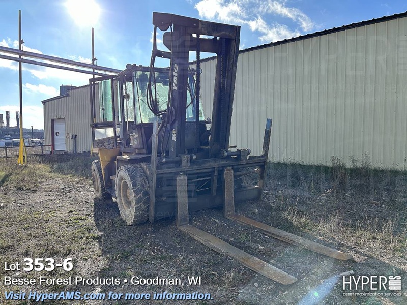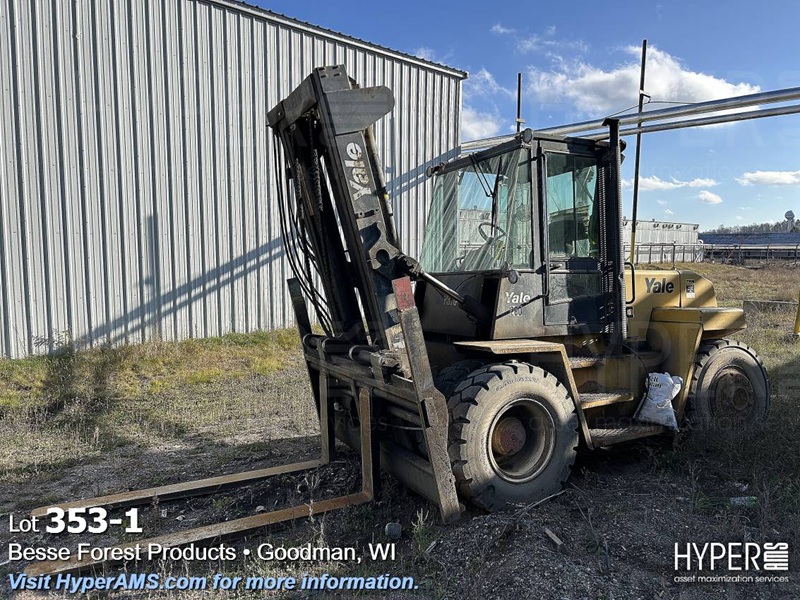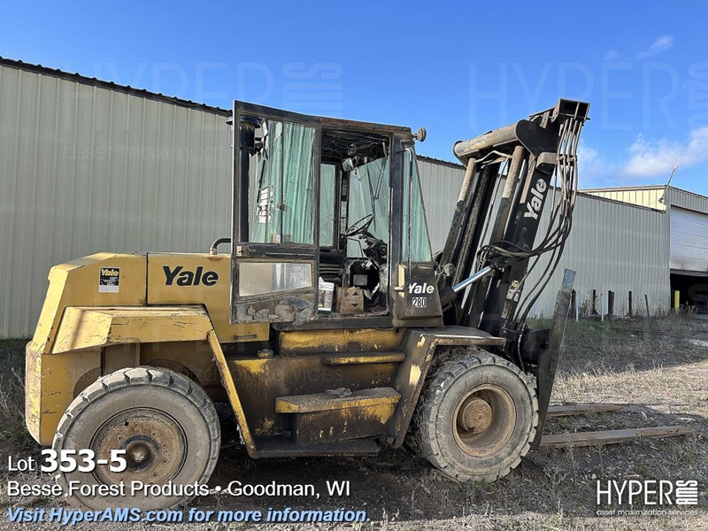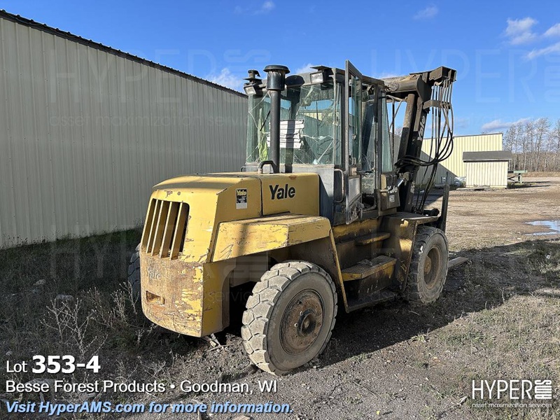 YALE 18,000LB CAP. FORKLIFT, 88" FORKS, MODEL GPD210DANPCV131, S/N A976D01513W ( HAS A CRACK MAST WAS PARKED NOT BEEN RAN SINCE )