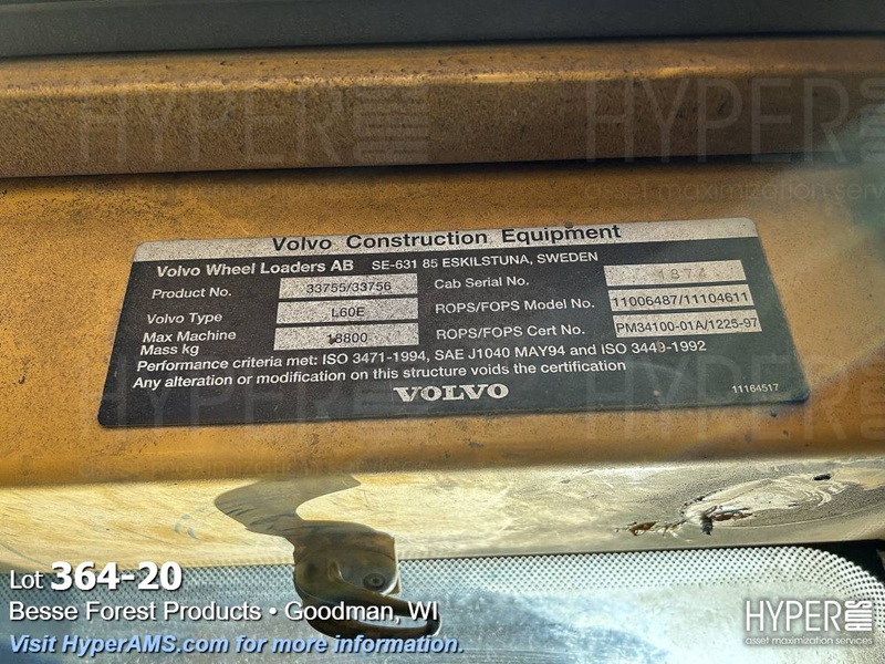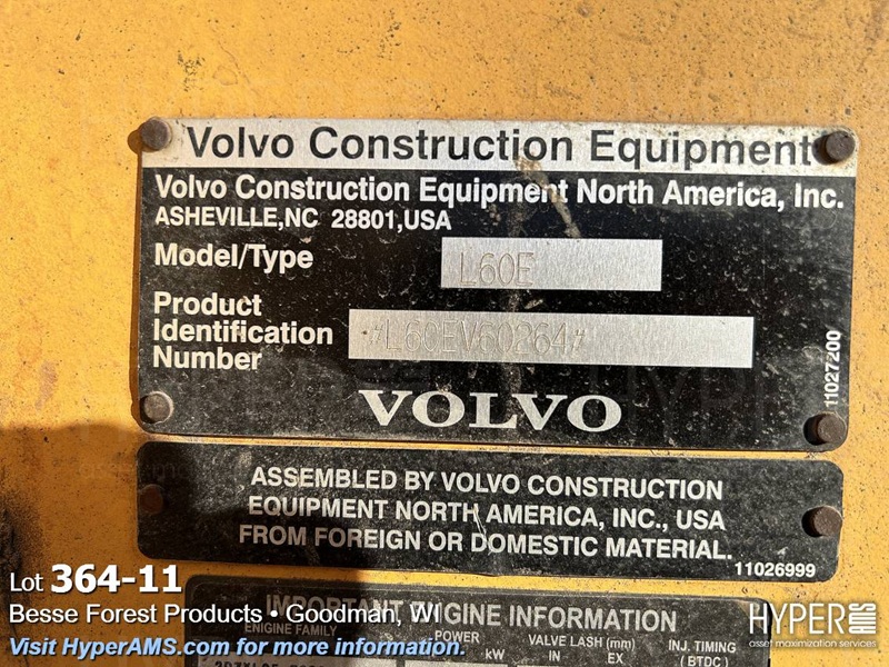 VOLVO L60E WHEEL LOADER #L60EV60264# NO ATTACHMENT