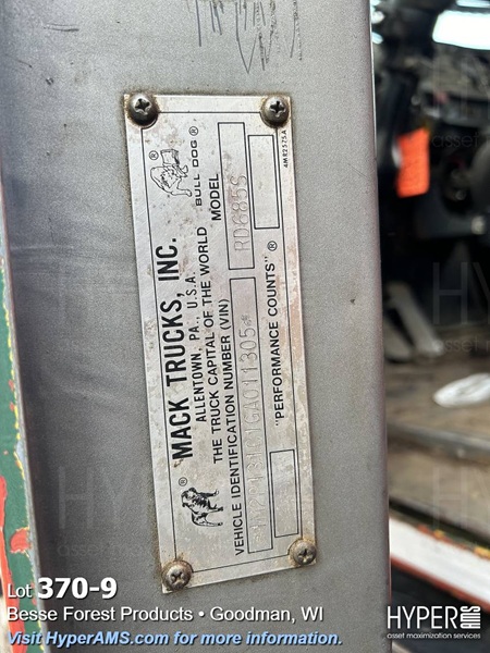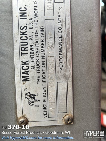 1986 MACK RD6855 DUMP TRUCK, 403475 MILES, VIN 1M2P13C1GA011305