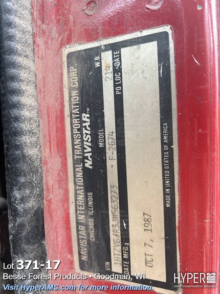 1987 NAVISTAR INTERNATIONAL F-2674 DUMP TRUCK, 578723 MILE, VIN 1HTZVGJR3JH563273