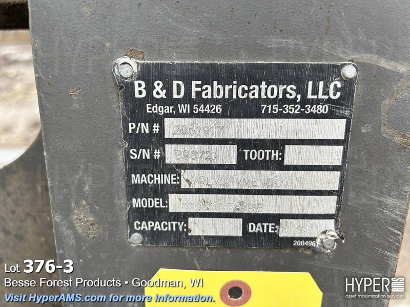 B&D VOLVO FORKLIFT CLAMP, 2018 YEAR, MODEL 300CNF3055 P/N # 2031917