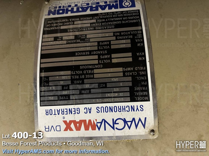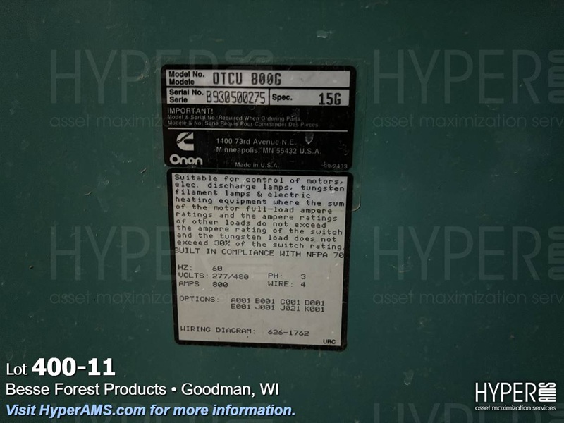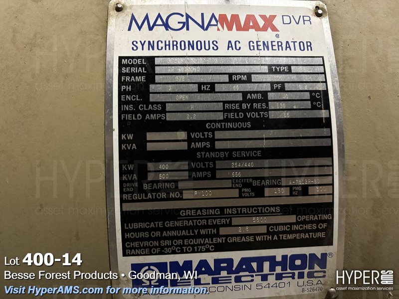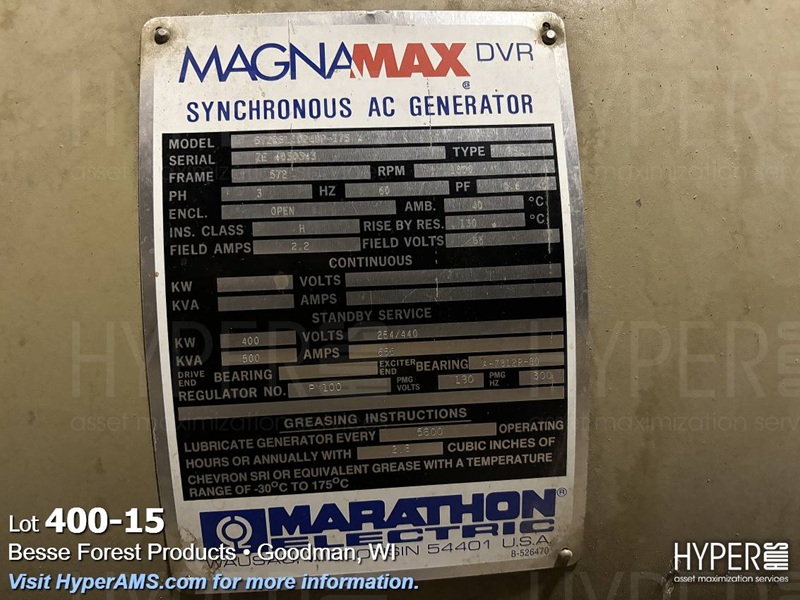 BACK UP GENERATOR, 400KW, 500-KVA, DIESEL WITH TANK AND SWITCH (LATE DELIVERY)