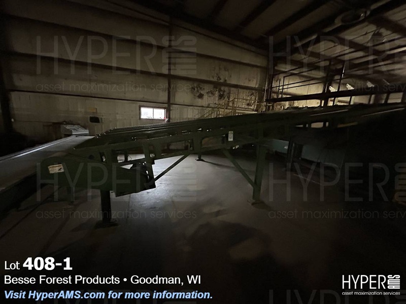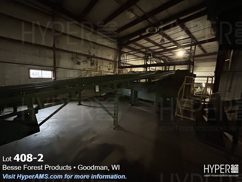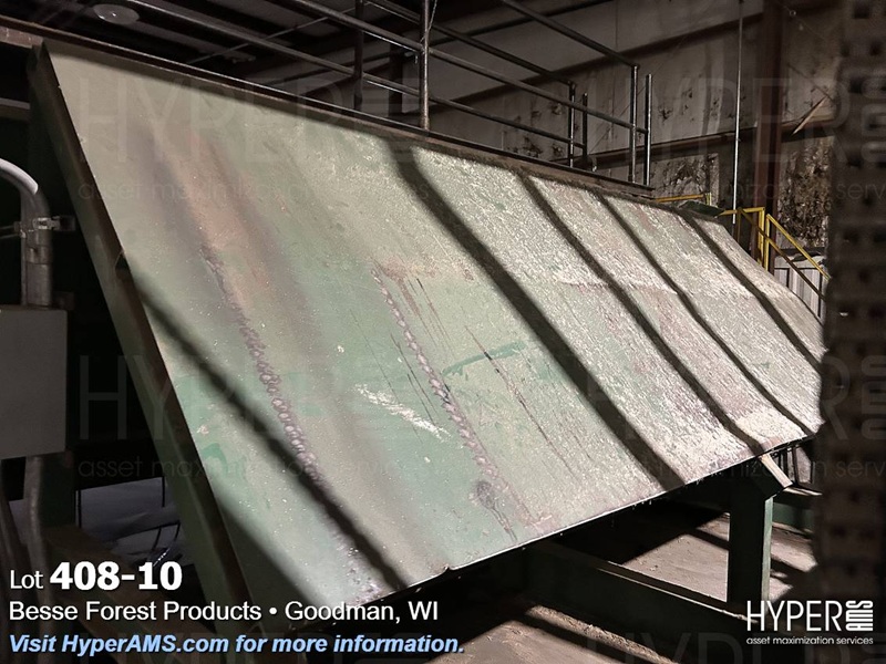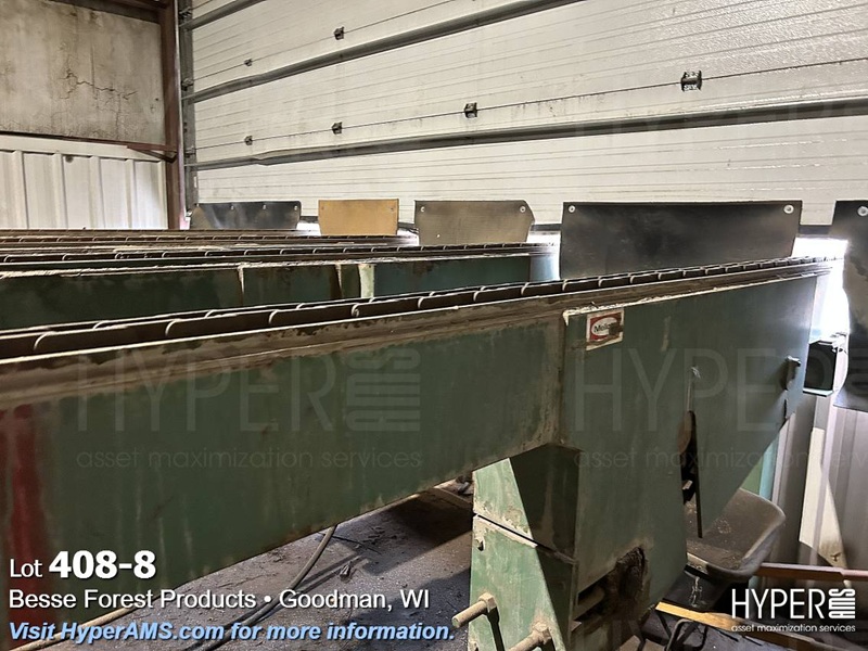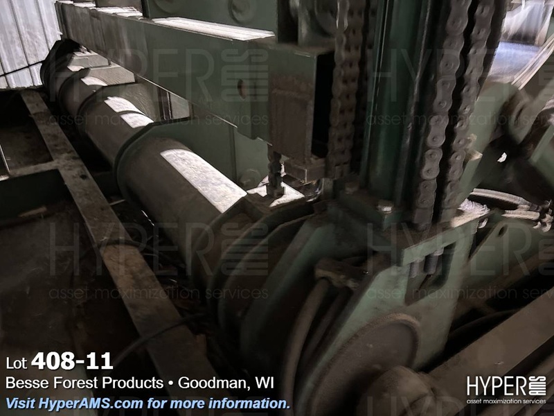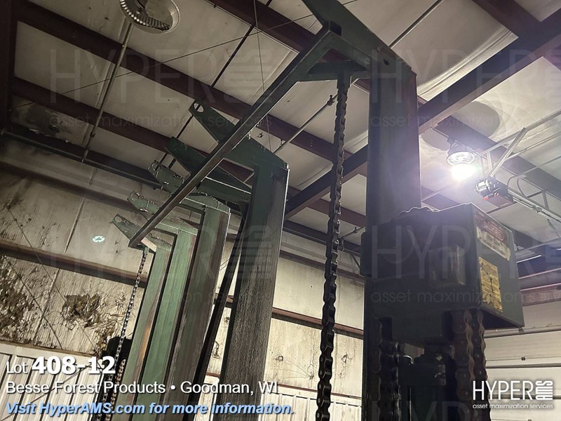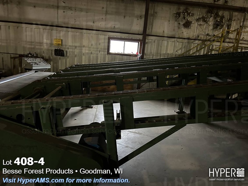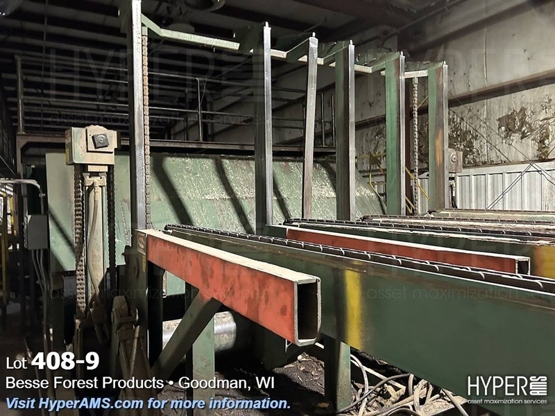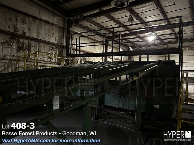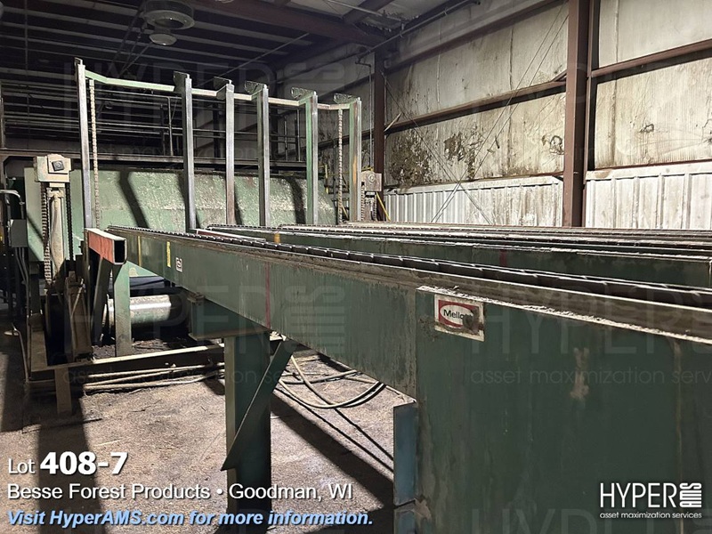 MELLOTT 4 CHAIN DECK WITH TILT HOIST AND DECLINE 6 CHAIN DECK, SPACER CONVEYOR AND STACKING SCISSOR LIFT STATION