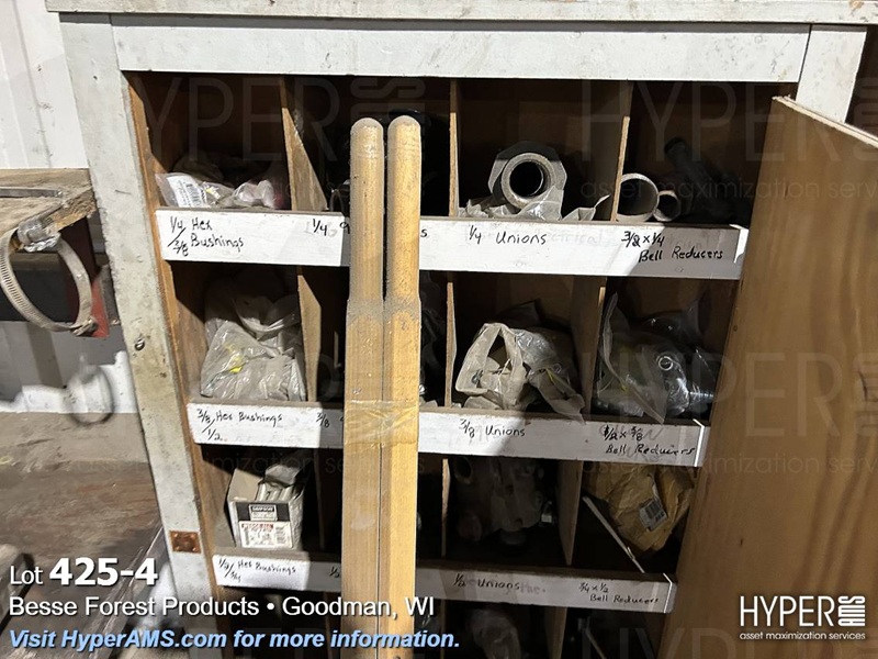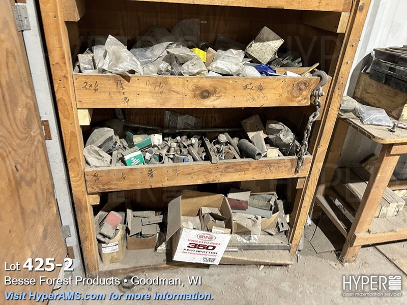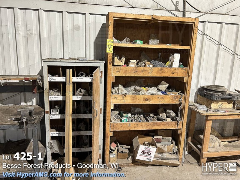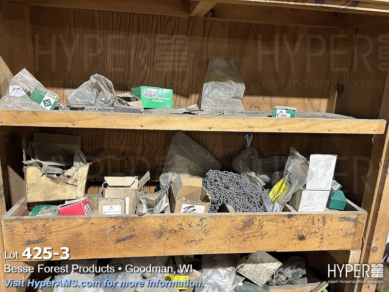 (2) WOOD CABINETS WITH CONTENTS-CHAIN, FASTENERS, FITTINGS, ETC.