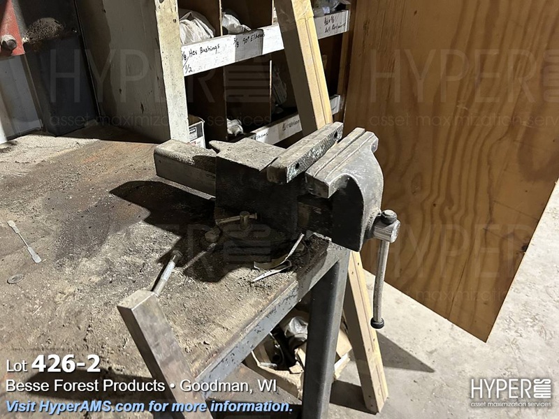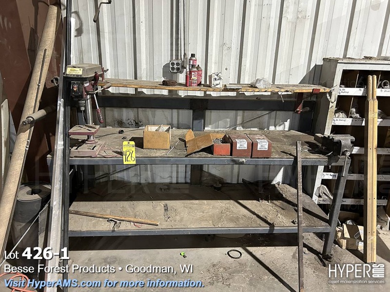STEEL TABLE/WOOD TOP WITH 6" VISE AND BENCH DRILL PRESS 1/3HP