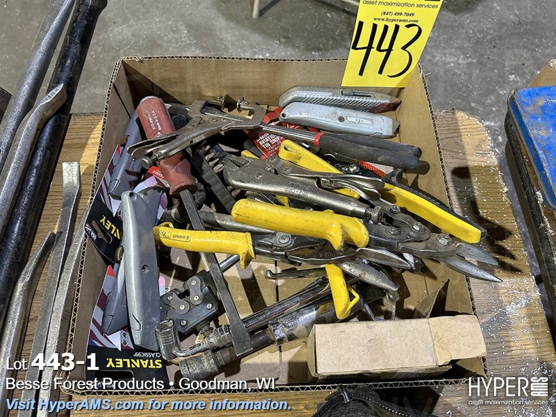 ASSORTED TOOLS- RAZOR KNIVES, SNIPES, CHAIN PULLERS
