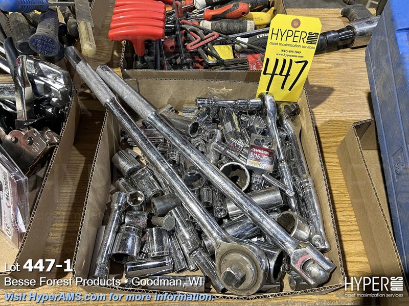 BOX OF SOCKETS, RACHETS, BREAKER BAR