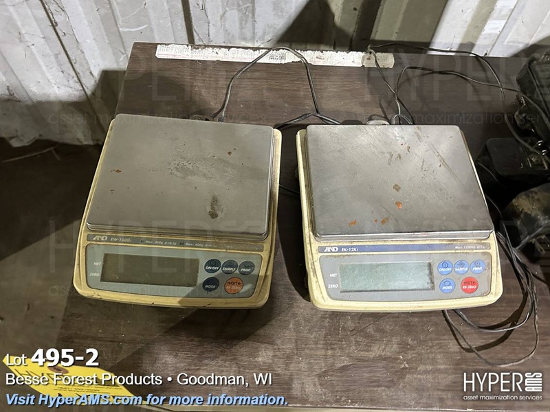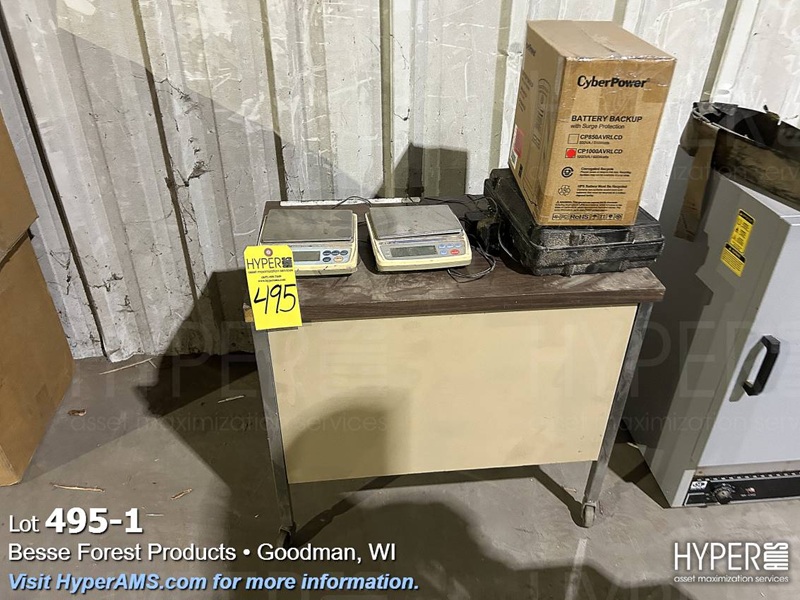 ROLLING CART, (2) BENCH SCALES, BATTERY BACKUP