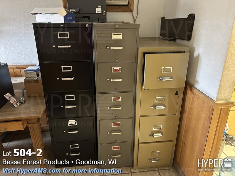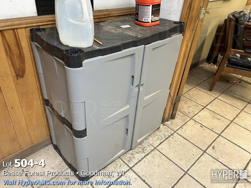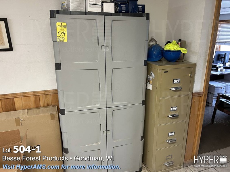 LEGAL FILE, STANDARD FILE, (2) FIRE RESISTANT FILES, TABLE, (2) RUBBERMAID CABINETS, COUNTER CABINET, DESK, CHAIR