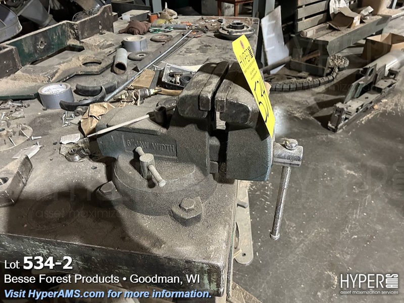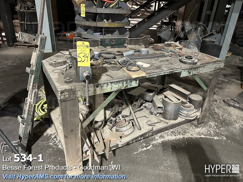 STEEL TABLE 3'X6' WITH 6" VISE AND MISC. STEEL