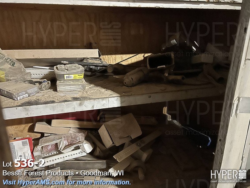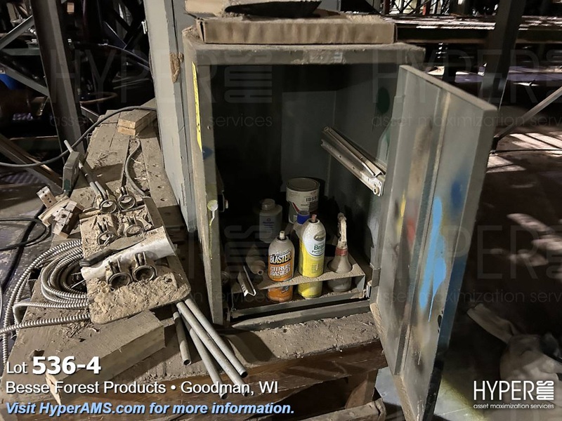 ROLLING WOOD CART WITH (3) CABINETS AND CONTENTS