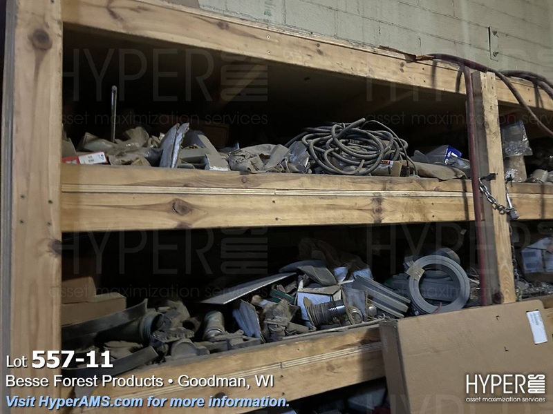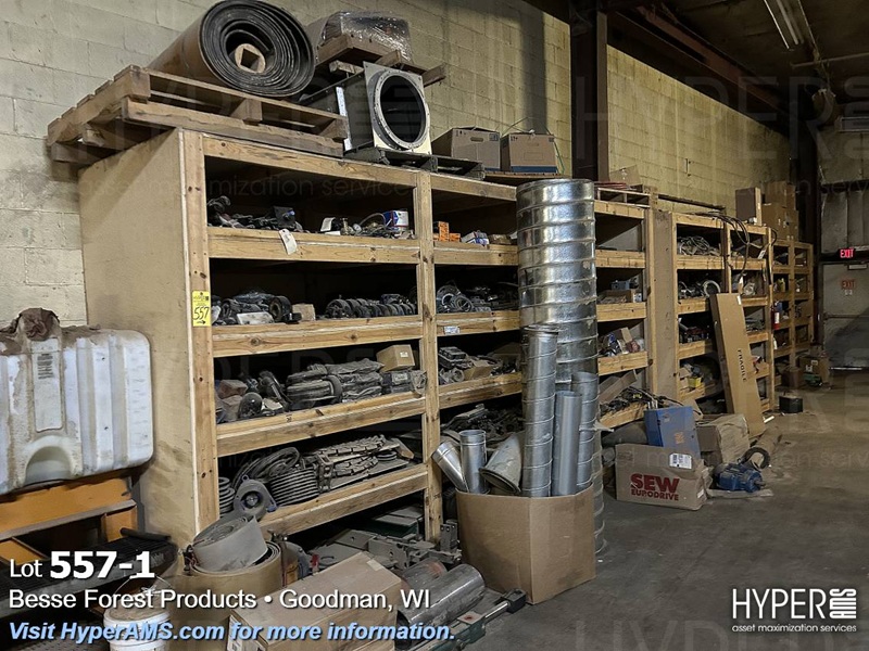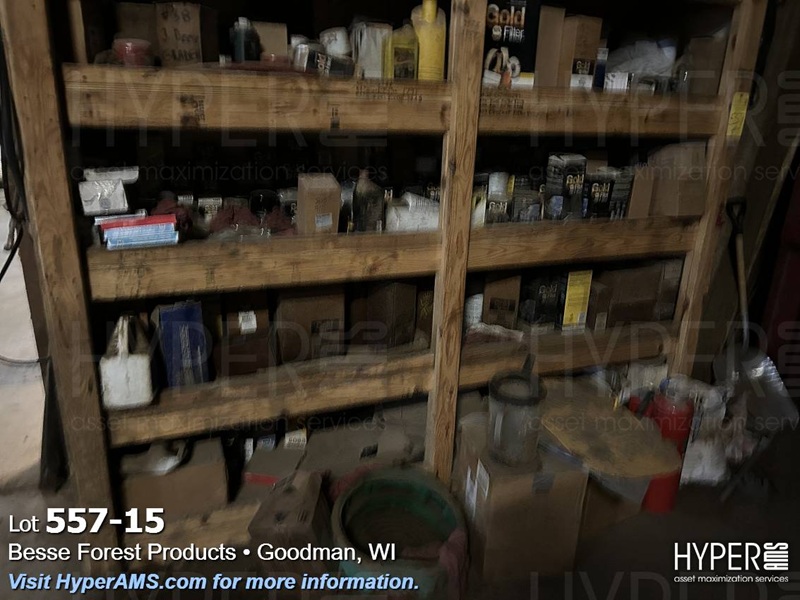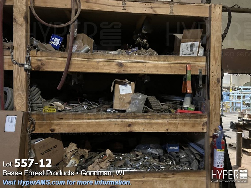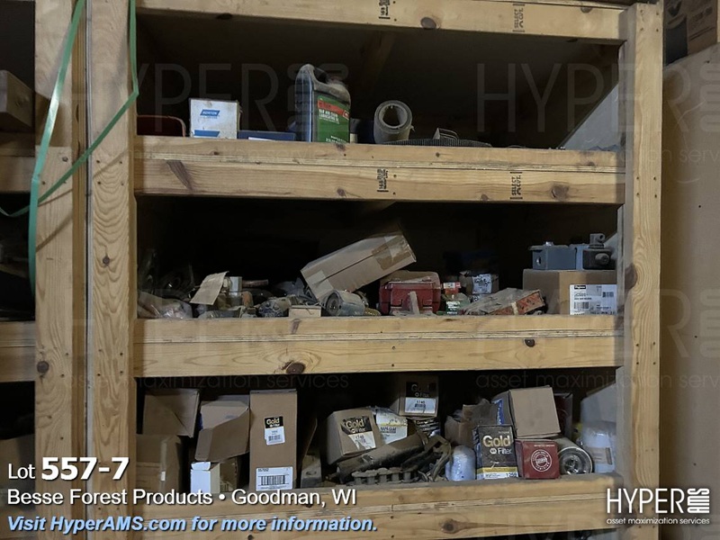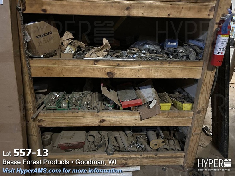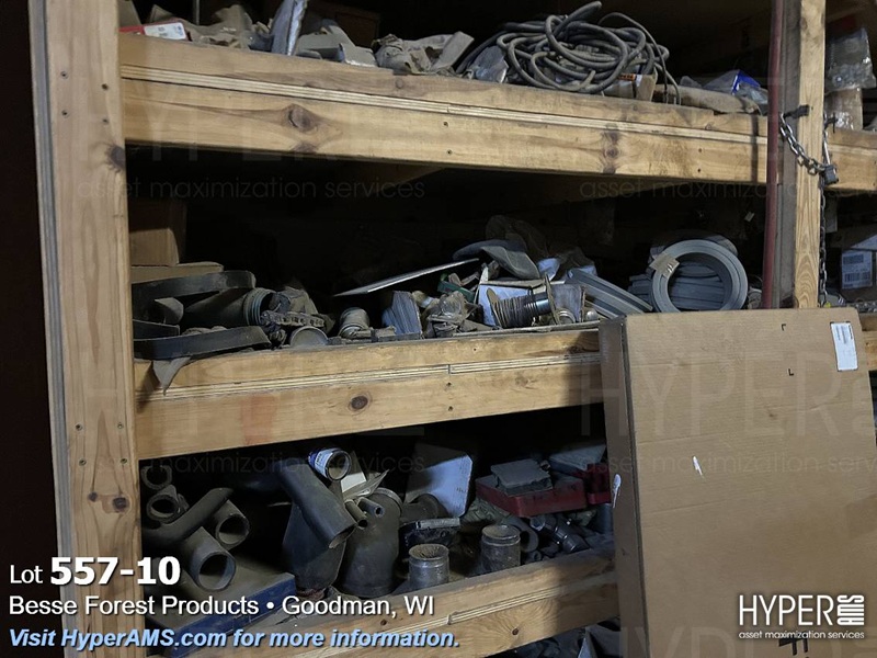 (4) WOOD SHELF UNITS WITH CONTENTS-VEHICLE REPAIR PARTS, MACHINE REPAIR PARTS, TUBES, FASTENERS