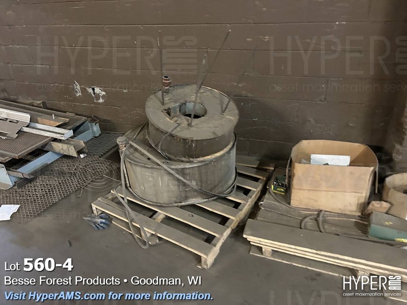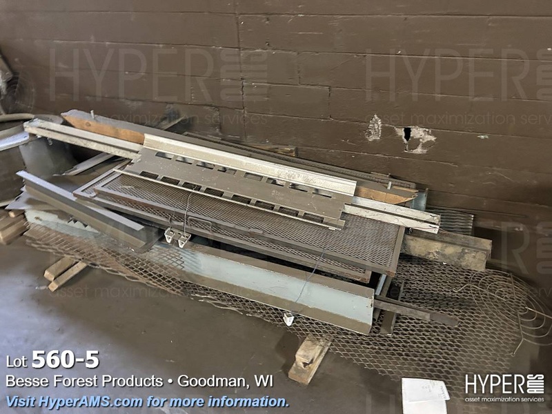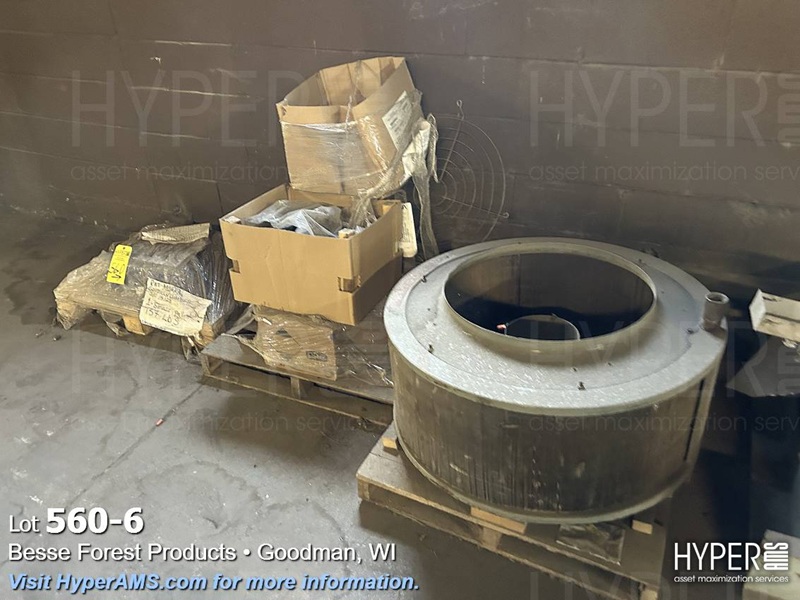 (5) SKIDS WITH CONTENTS-HEATERS, MOTORS, CAGE DOORS, ETC. AND PART OF A DETECTOR
