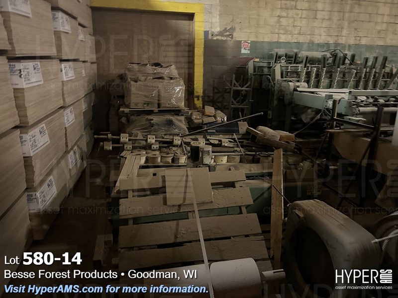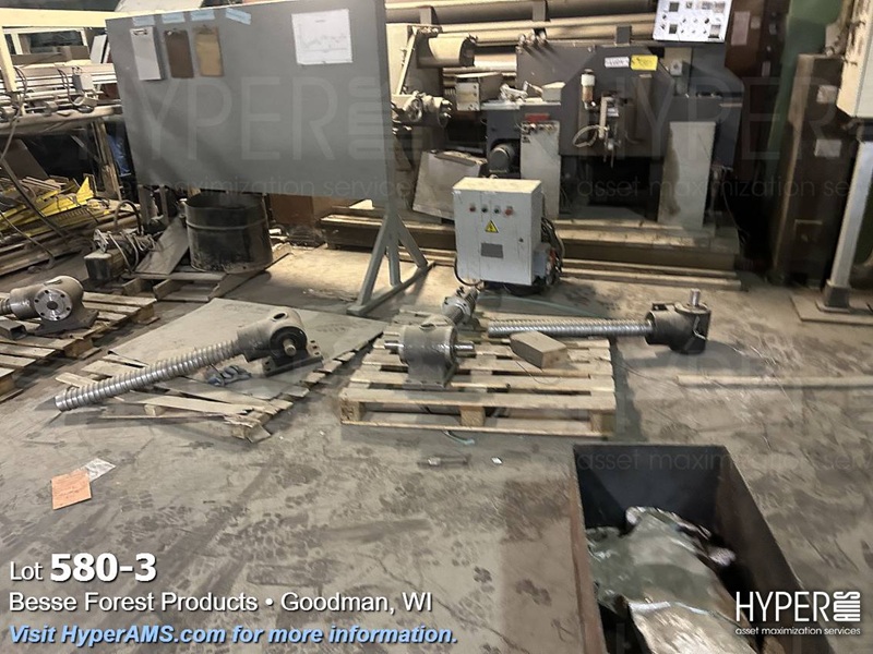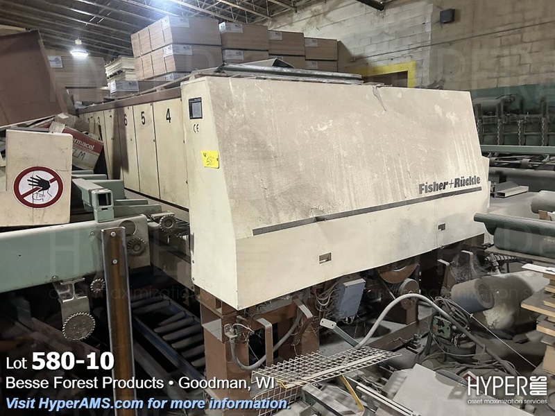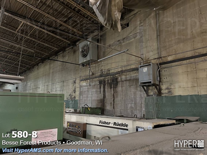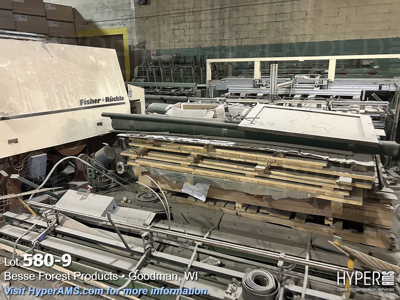 ASSORTED MACHINES AND PARTS AGAINST WALL-FISHER RUCKLE MACHINE TYPE FLM-28, (2) RUCKLE GUILLOTINES (BUNCH CLIPPERS), JOHN MACHINE, SPLICER, RUCKLE TYPE FZS28.21 CROSS FEEDS, CONTROLS, MOTORS, ETC.