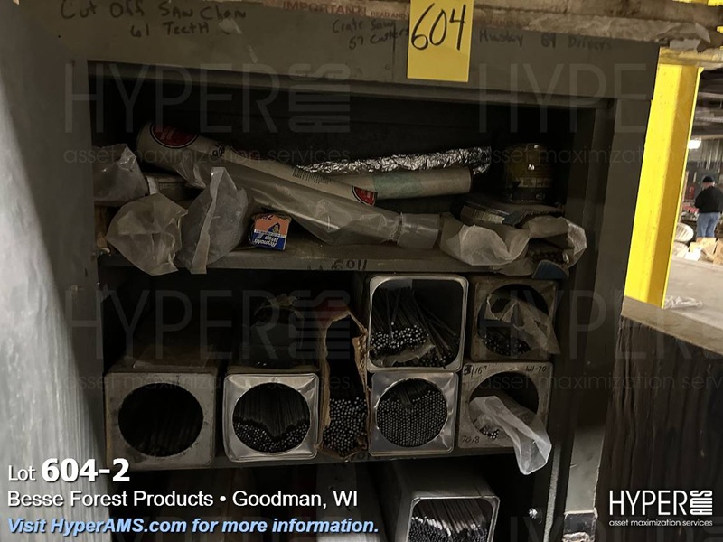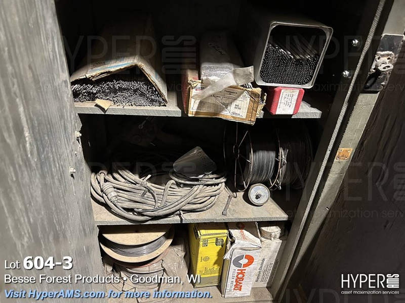 WOODEN CABINET WITH WELDING ROD AND WIRE