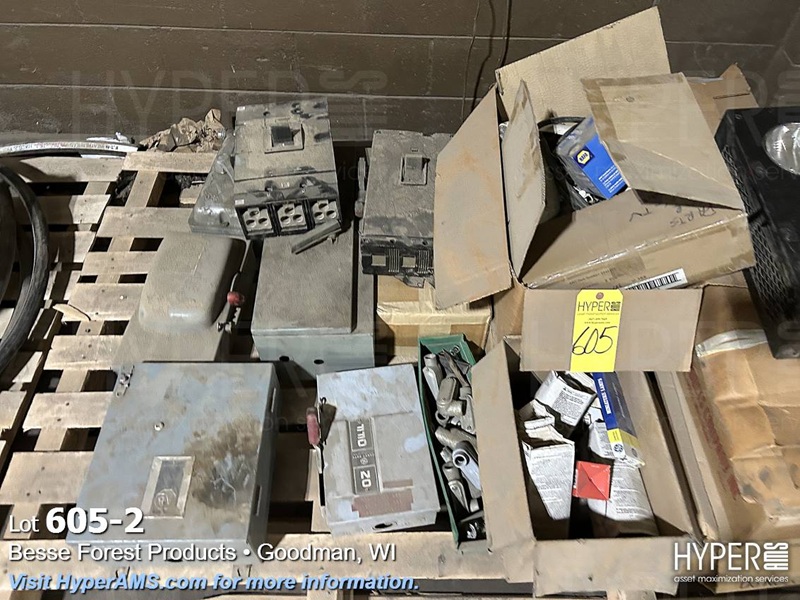 SKID OF ELECTRICAL BOXES, BREAKERS, LIGHTS, SPOOLS