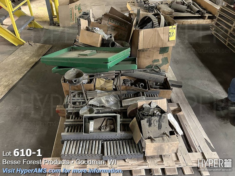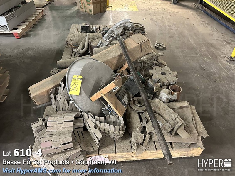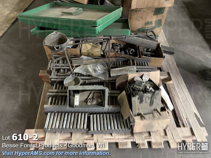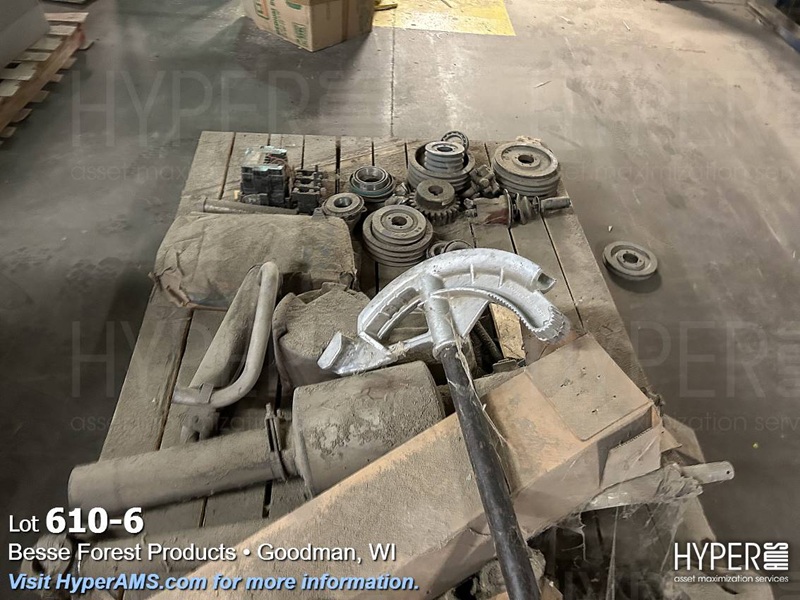 (2) SKID WITH BENDER, STARTER, MACHINE PARTS, DRIVE BELTS, PIPE FITTINGS, (2) MELT CUPS