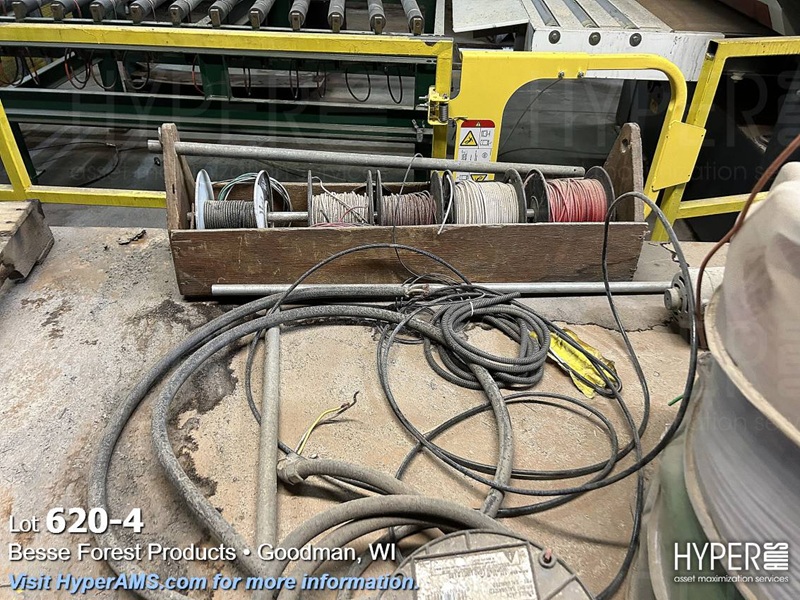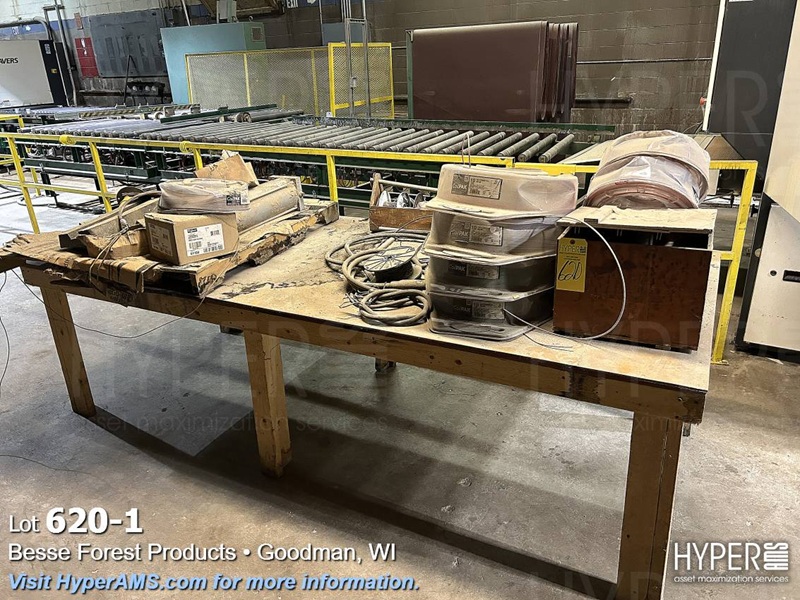 WOOD TABLE WITH WIRE AND HYDRAULIC CYLINDERS