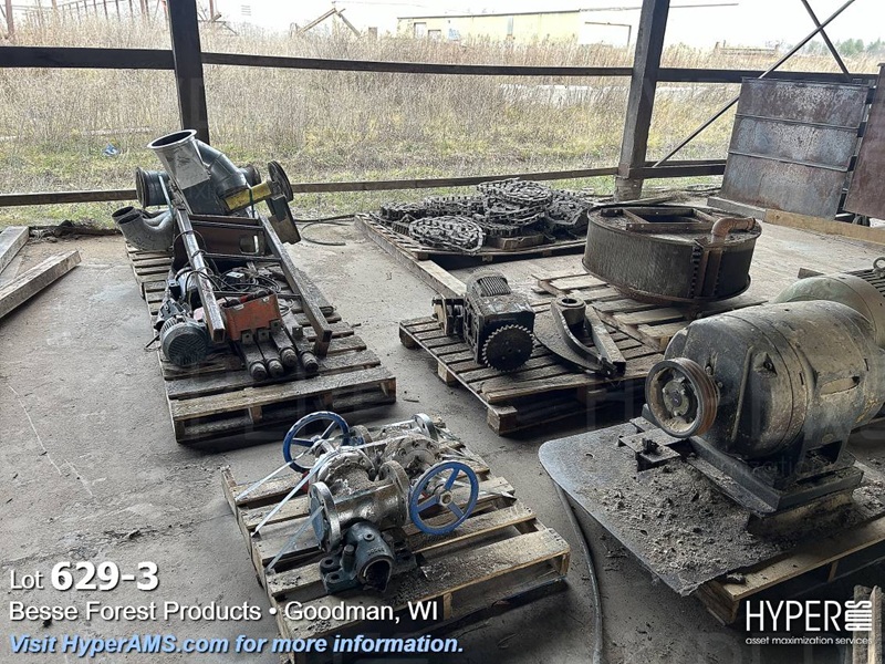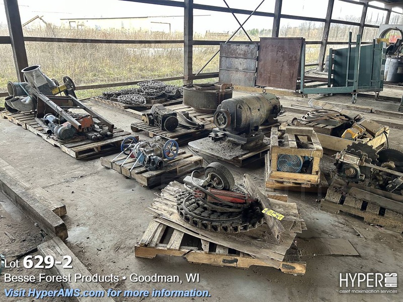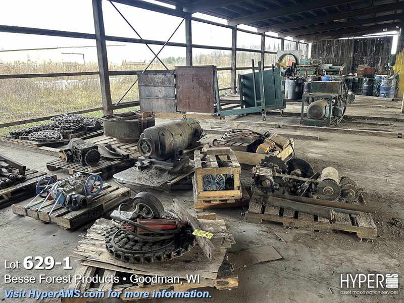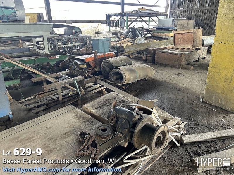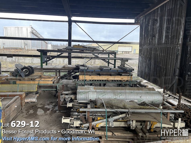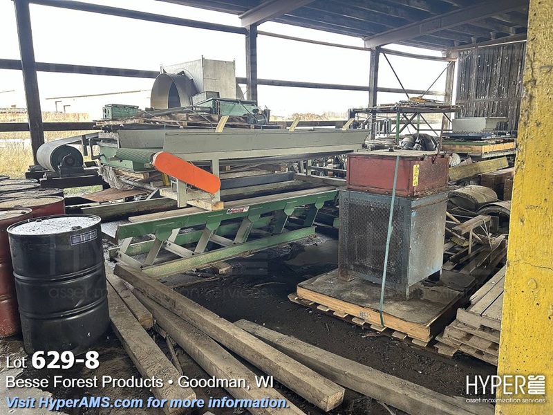 TIMESAVER, ROLLERS, CHAIN, BELT CONVEYORS, VIBRATORY CONVEYOR, METAL DETECTOR (INOPERABLE), ROLLING CARTS, HYDRAULIC UNIT, MOTORS, VALVES, SPROCKETS, (ALL IN VARIOUS DEGREE OF DISREPAIR) (EAST WALL OF SHED)