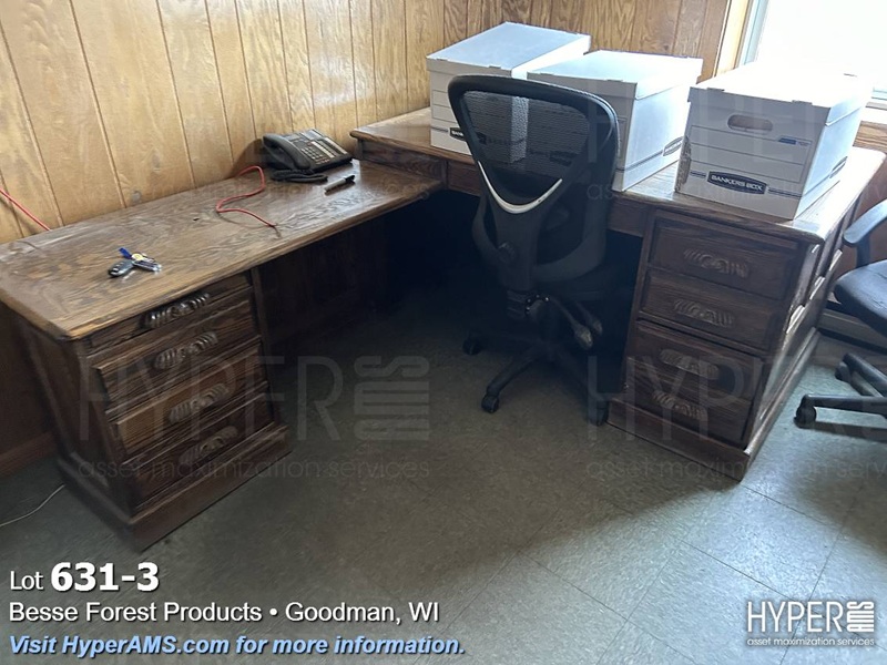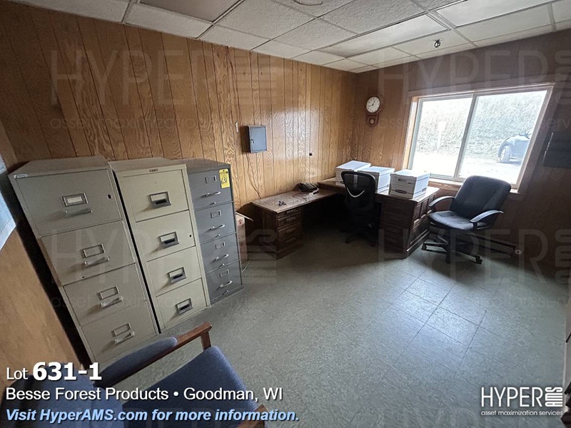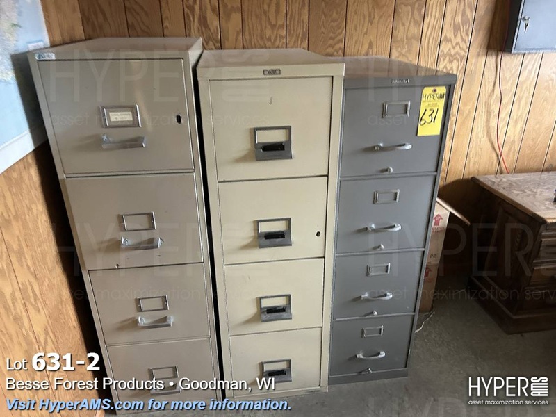 FURNITURE IN OFFICE-3 CHAIRS, DESK WITH RETURN, (2) 4 DRAWER FILES, (1) FIRE RESISTANT FILE