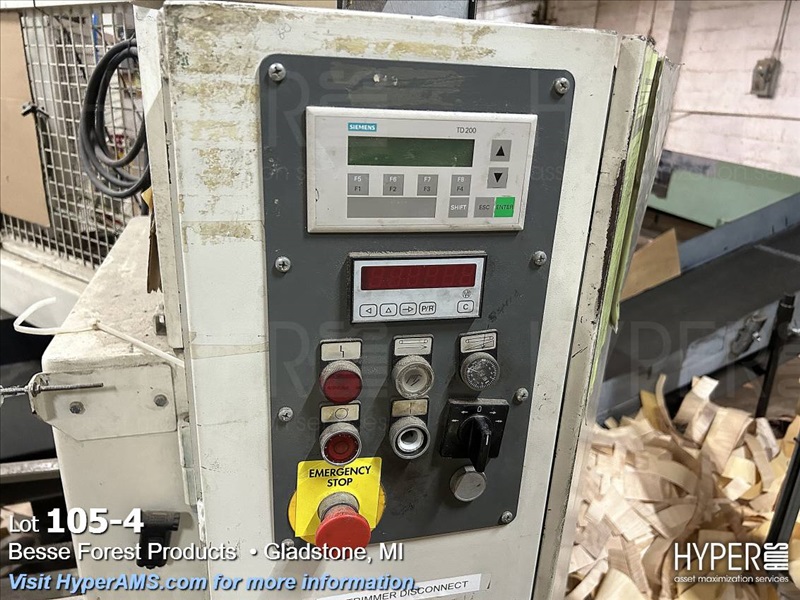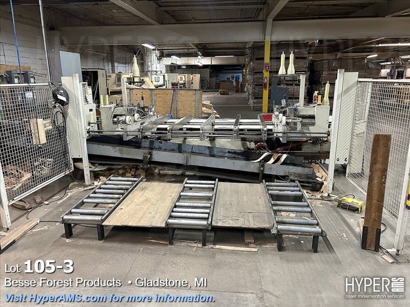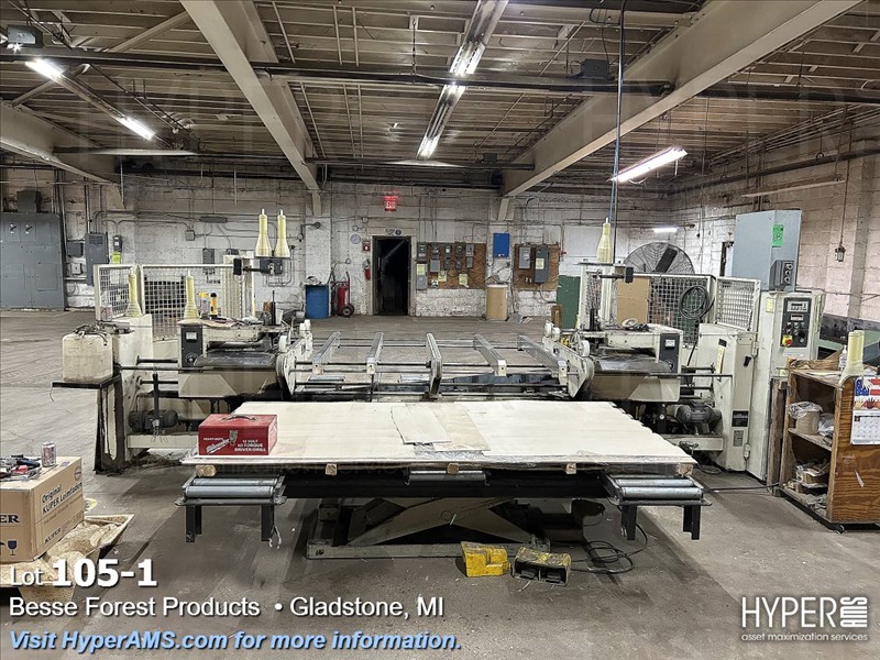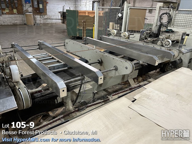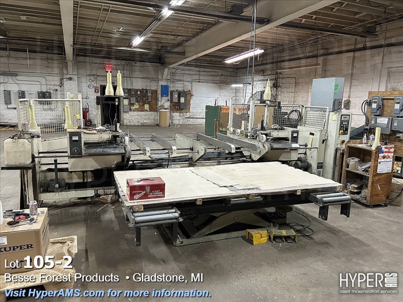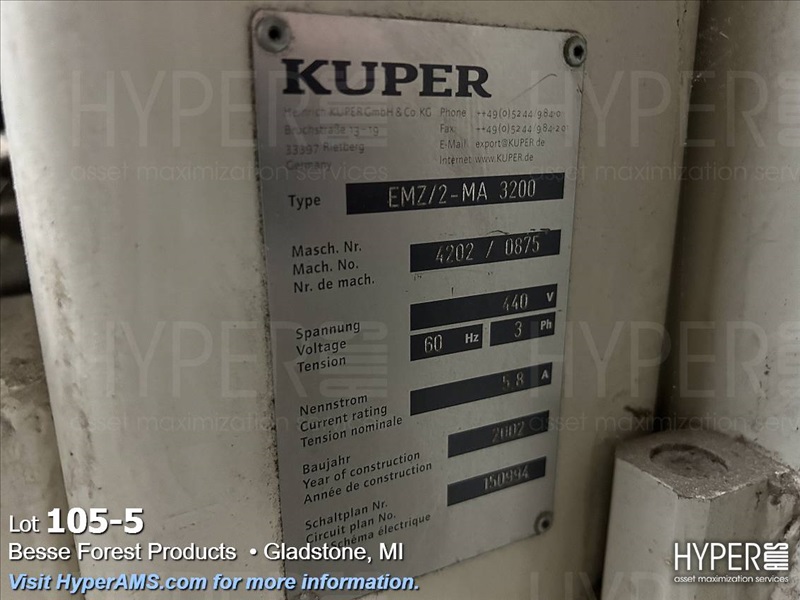 KUPER EMZ/2-MA 3200 DOUBLE END TRIMMER/SPLICER, 132", WITH (2) LIFT TABLES AND SCRAP CONVEYORS TOTAL LENGTH APPX. 28', YEAR 2002 , S/N#4202/0875