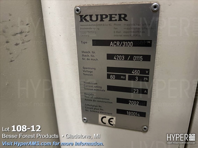 KUPER SUPER QUICK CROSSFEED VENEER SPLICER, TYPE ACR/3100, 120", S/N#4203/0115, YEAR 2002