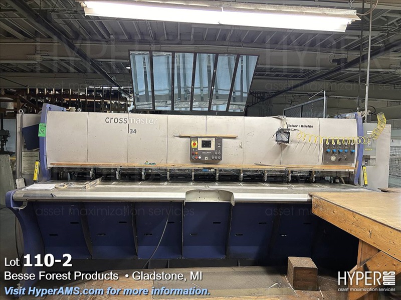 FISHER & RUCKLE FZR-34 CROSS MASTER CROSS FEED SPLICER, 132", SIEMENS CONTROL, S/N#741265/07 WITH DA-20 STACKER, 2002, WITH SCISSOR LIFT TABLE, (2) TABLES- 1-9'X16' WITH LIGHT SECTION, 1-4'X8'