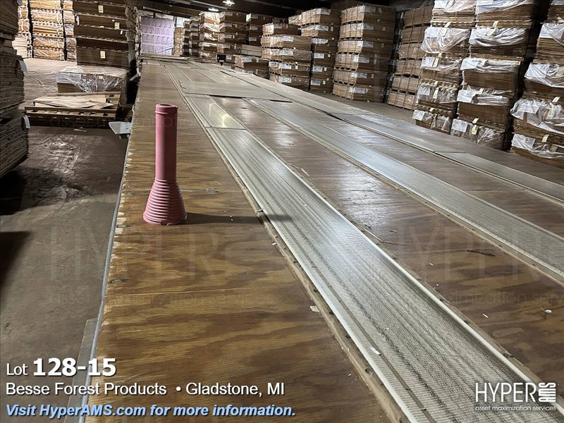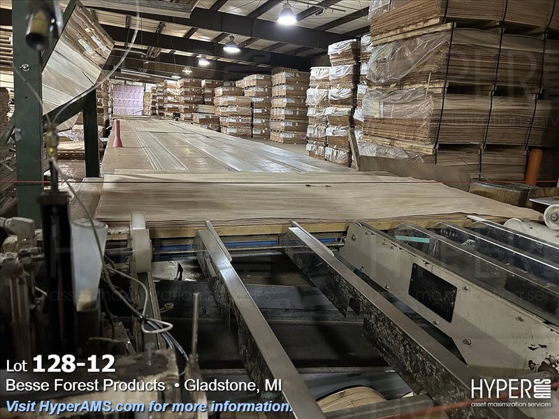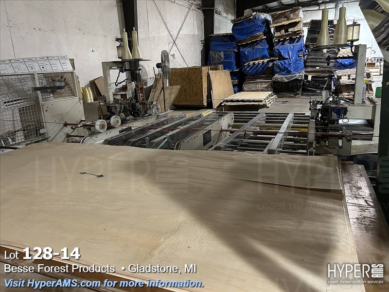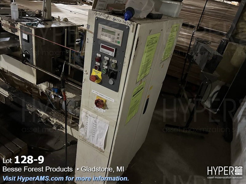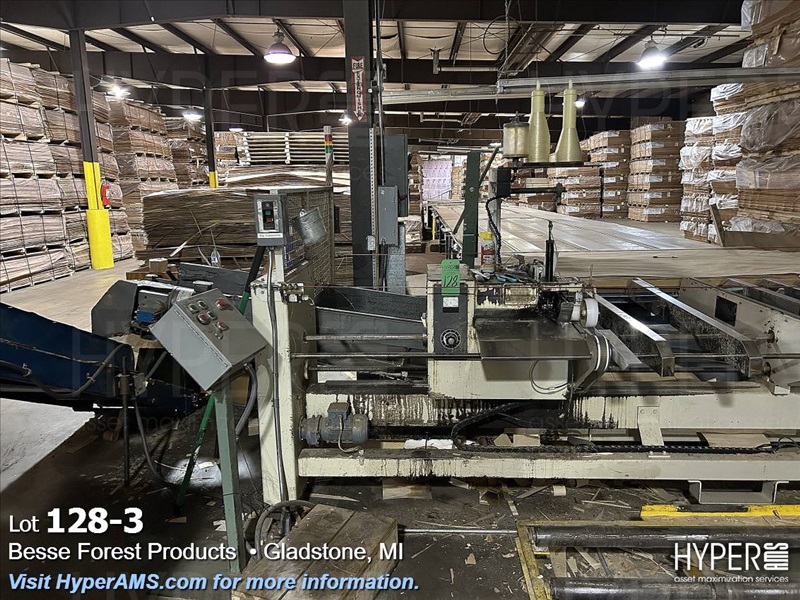 KUPER EMZ/2M 3200 DOUBLE END TRIMMER/SPLICER, 126", SIEMENS CONTROL, YEAR 2003, S/N#4311/0894, WITH BELT SCRAP CONVEYOR AND SCISSOR LIFT TABLE, AND GRADING TABLE APPX. 80'