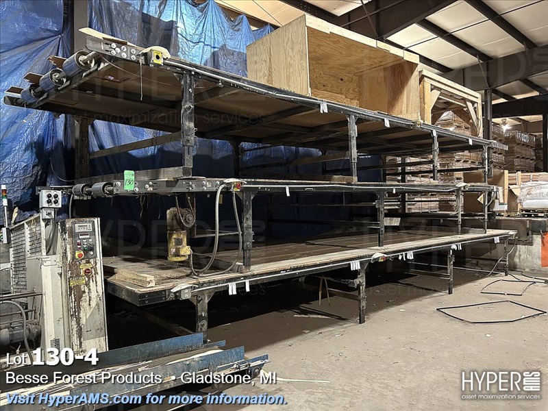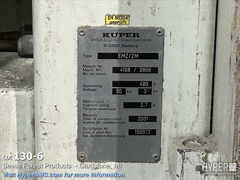KUPER EMZ/2M DOUBLE END TRIMMER/SPLICER, APPX. 110", SIEMENS CONTROL, YEAR 2001, S/N#4108/0869 WITH (2) BELT SCRAP CONVEYORS, WITH GRADING TABLE, APPX. 80' LONG