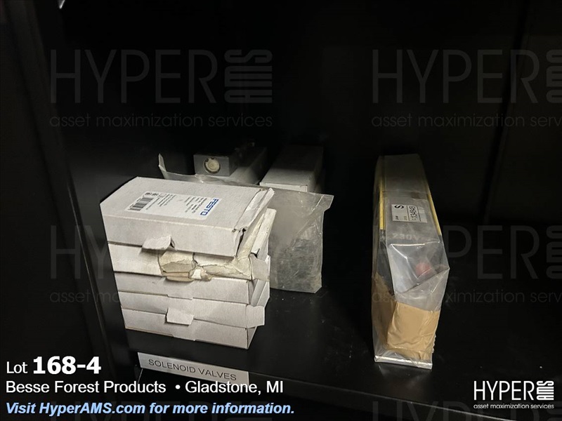 2 DOOR CABINET WITH MACHINE REPAIR PARTS-VALVES, AIR CYLINDERS