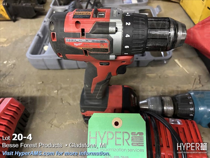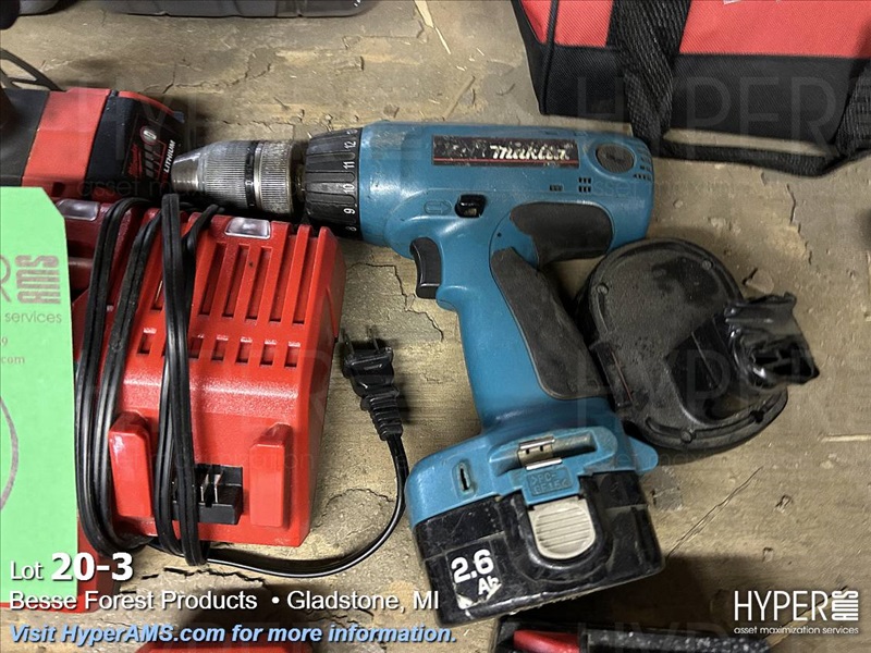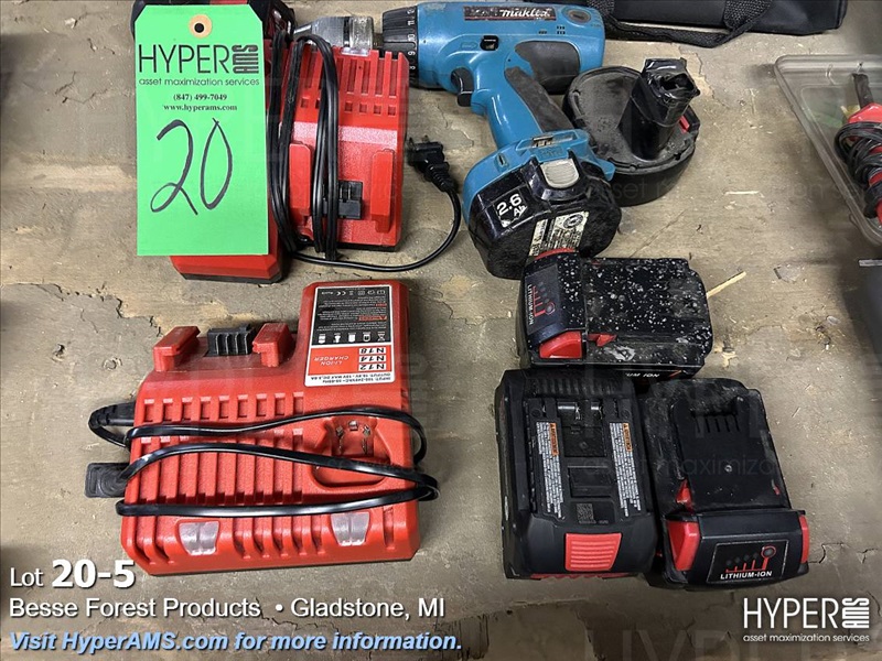 MAKITA DRILL, MILWAUKEE DRIIL/DRIVER WITH (3) BATTERIES, (2) CHARGERS, 18 VOLT