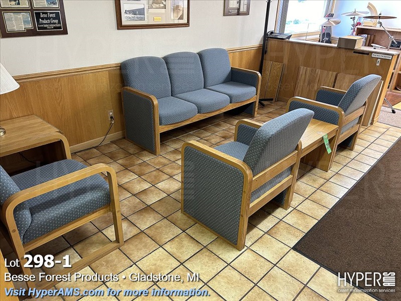 COUCH, THREE CHAIRS, 2 SIDE TABLE, AND LAMP