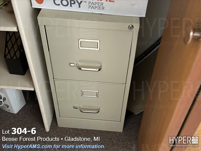 WOOD DESK 6' X 3' WOOD SHELF, CREDENZA 90", FOUR DRAWER LATERAL FILE CABINET, AND CHAIRS