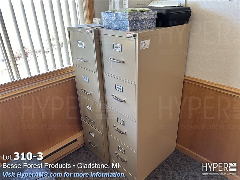WOOD DESK WITH RIGHT-HAND RETURN, 2 FILE CABINET, BOOK SHELF,AND CHAIRS