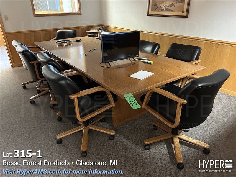 WOOD CONFERENCE TABLE 10', AND 10 CHAIRS
