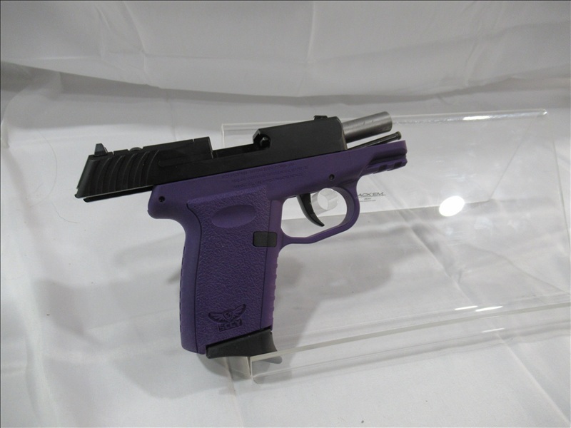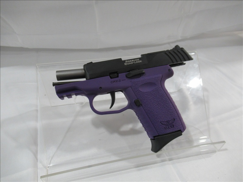 9MM PURPLE SEMI-AUTO PISTOL, ROEBUCK QUAD-LOCK, (2) 10-RND MAGAZINES & BOX (UNUSED)