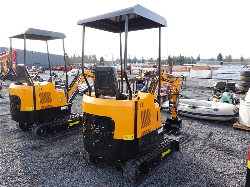MINI EXCAVATOR, RATO 15 1 CYL GAS, 13" BUCKET, THUMB, BLADE, RUBBER TRACKS, CANOPY