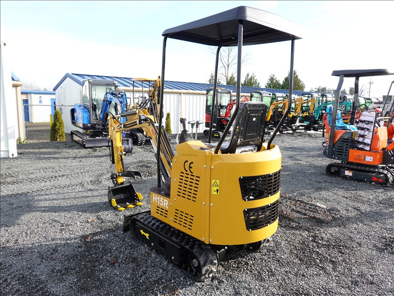 MINI EXCAVATOR, RATO 15 1 CYL GAS, 13" BUCKET, THUMB, BLADE, RUBBER TRACKS, CANOPY