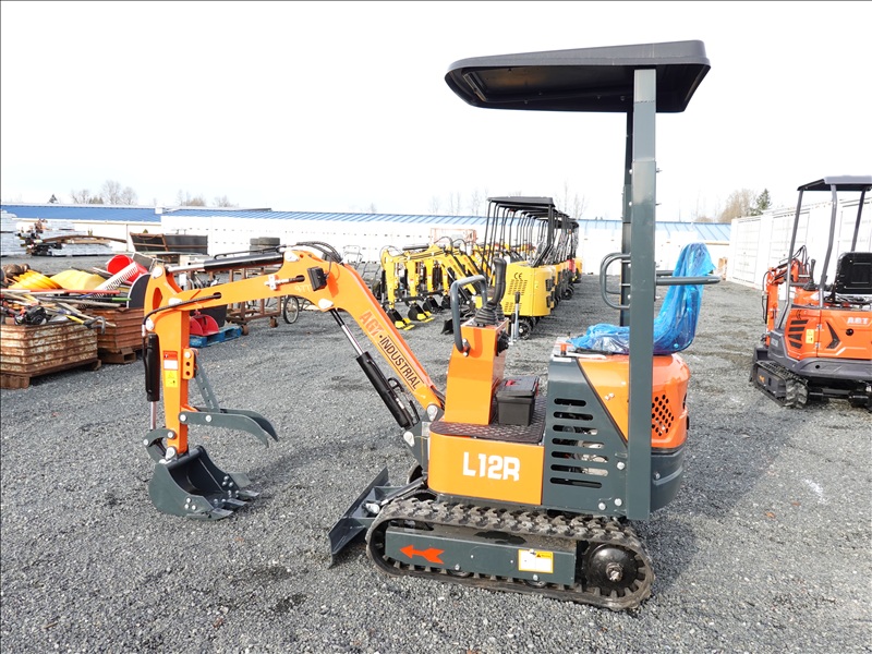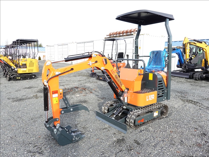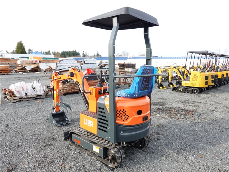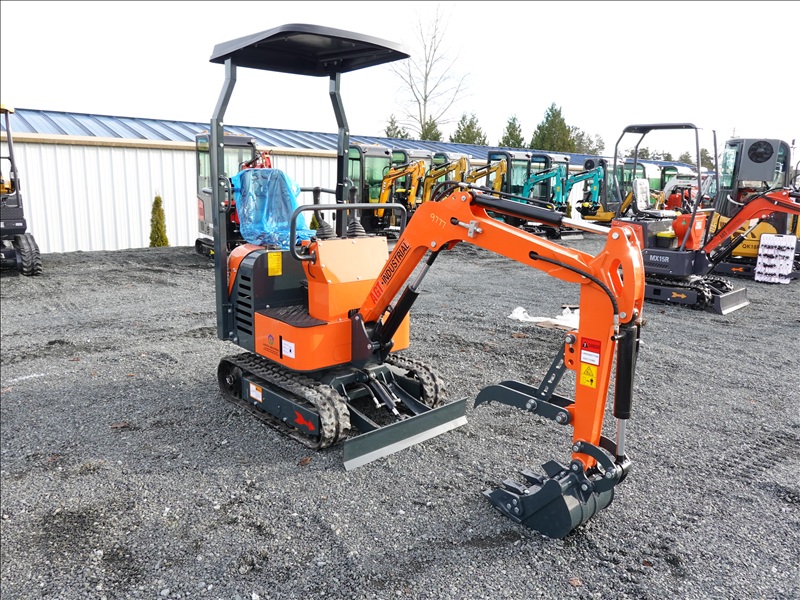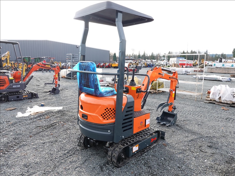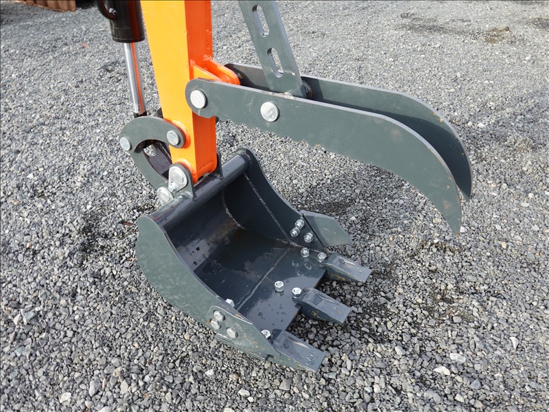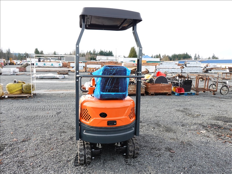 MINI EXCAVATOR, 1 CYL GAS, 13" BUCKET, THUMB, BLADE, RUBBER TRACKS, CANOPY