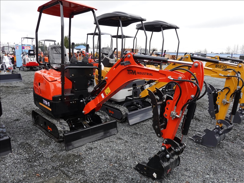 MINI EXCAVATOR, 13.5 HP BRIGGS & STRATTON 1 CYL GAS, 14" BUCKET, HYD THUMB, BLADE, RUBBER TRACKS, CANOPY