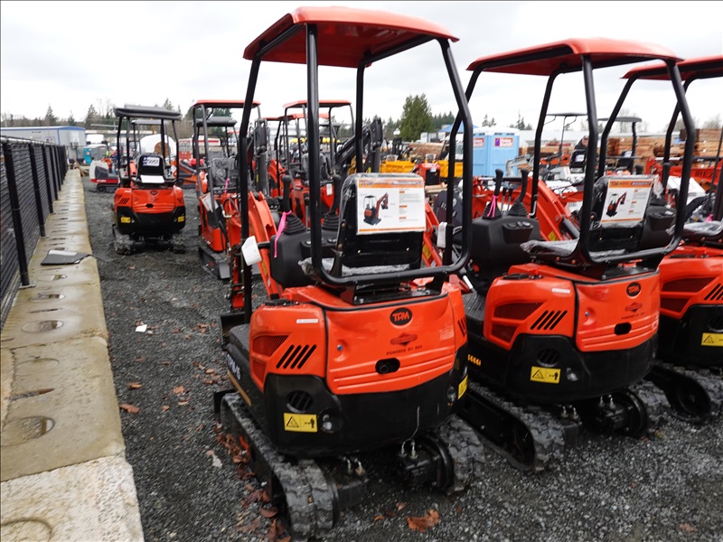 MINI EXCAVATOR, 13.5 HP BRIGGS & STRATTON 1 CYL GAS, 14" BUCKET, HYD THUMB, BLADE, RUBBER TRACKS, CANOPY