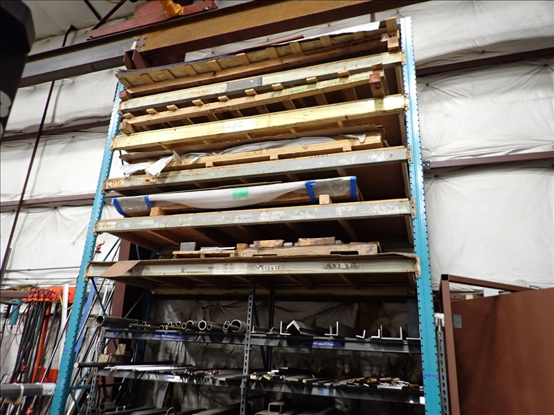 SINGLE SECTION OF PALLET RACKING W/ASSORTED CUT STOCK & SHEET GOODS