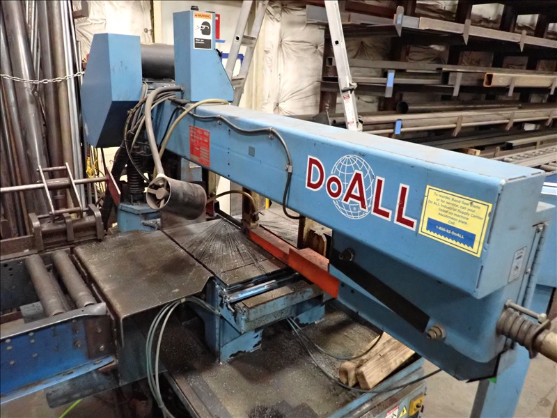 HORIZONTAL MITERING METAL CUTTING BANDSAW, CLAMP, COOLANT, IN/OUTFEED ROLL CASE, CONTROLS