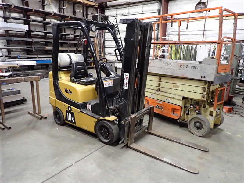 3,650 LB CAP. SOLID TIRED FORKLIFT, 187" 3-STAGE MAST, SIDE SHIFT, PROPANE