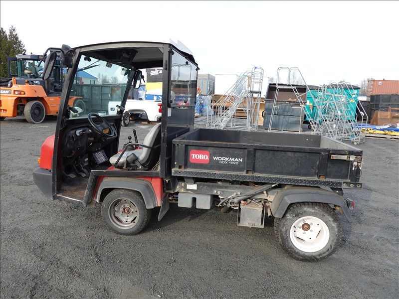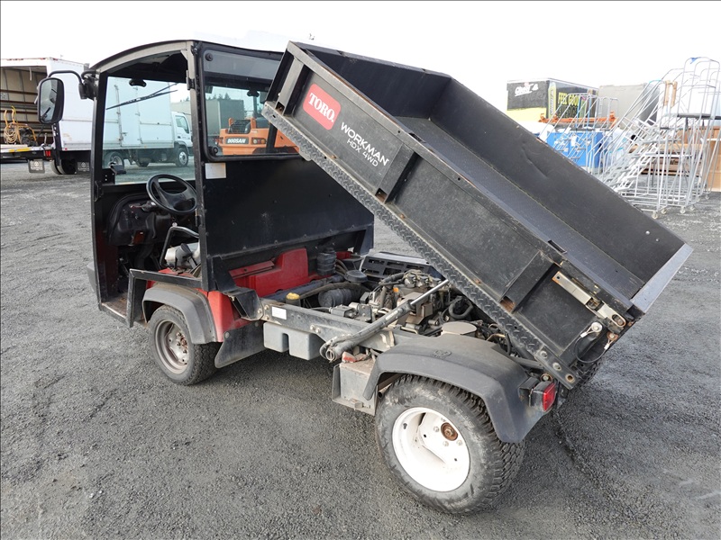 4WD UTILITY VEHICLE, KUBOTA WG972-G-ET GAS, 3 SPD, HYD DUMP, AUX HYD, CANOPY