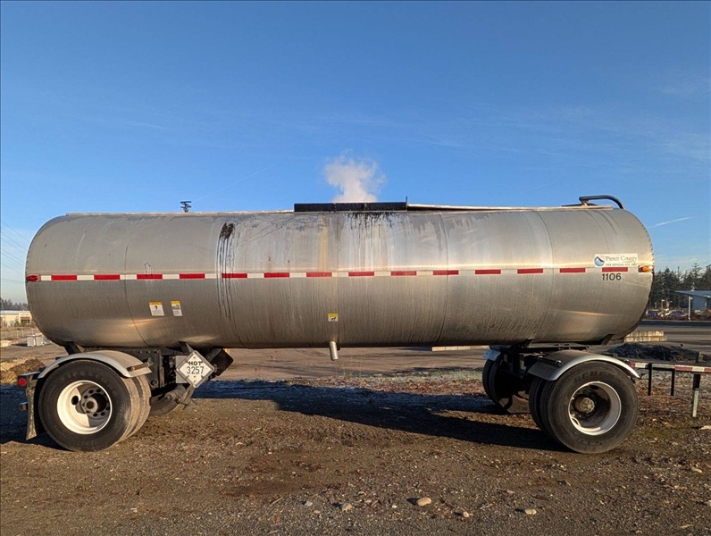4,500 GALLON ALUMINUM 2-AXLE INSULATED HOT OIL PUP TRAILER, (COUNTY DISCLOSURE: CRACKS IN DOLLY, SHOULD NOT BE TOWED, LOCATED AT 4812 196TH ST E SPANAWAY, WA 98387. FOR PREVIEW PLEASE CONTACT WILL AT 253-798-2551, REMOVAL BY WEDNESDAY, FEBRUARY 26TH)