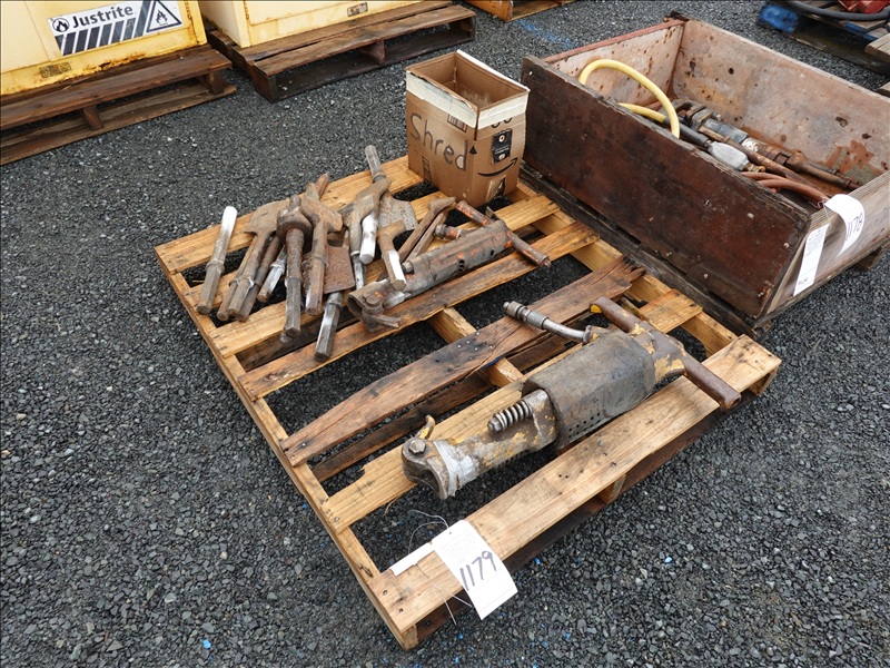 LOT, ASSORTED PNEUMATIC BREAKER TOOLS & BITS
