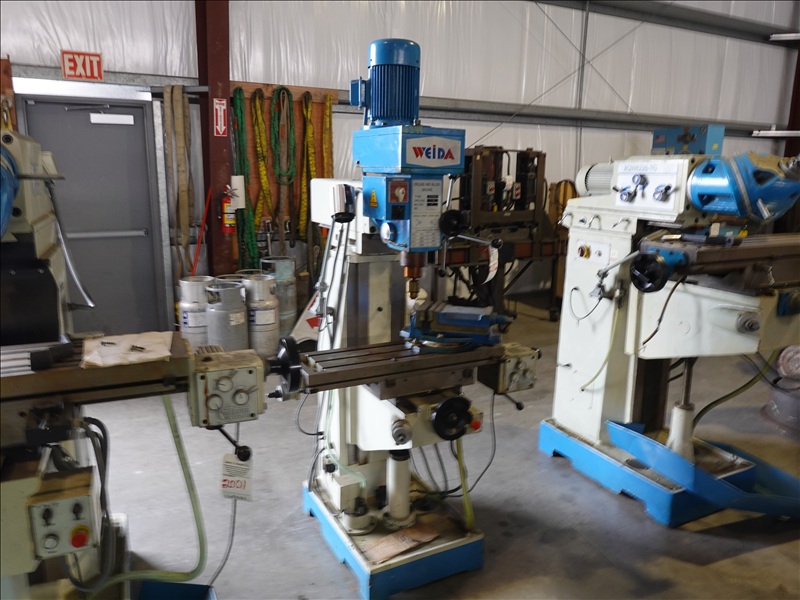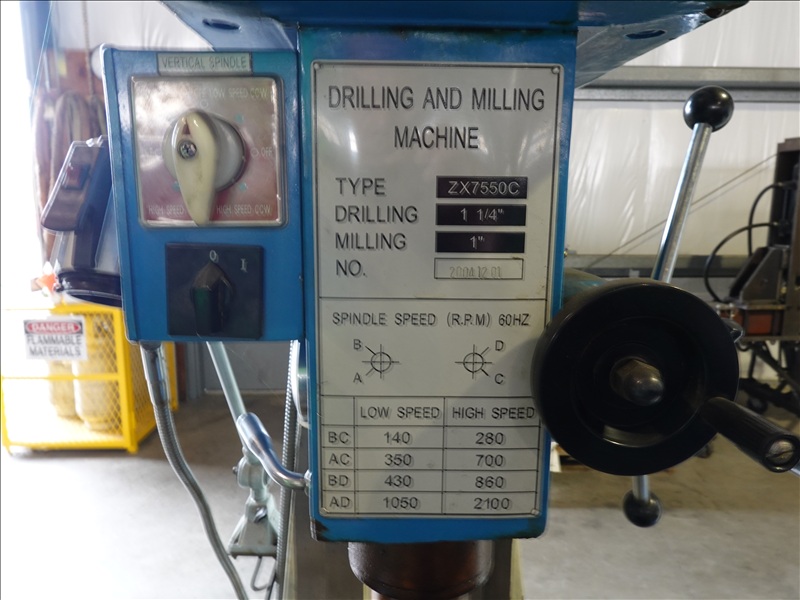 DRILLING & MILLING MACHINE, 1-1/4" DRILLING & 1" MILLING W/31-1/2" X 9-1/2" T-SLOT TABLE & 6" MACHINIST VISE, 440V, 3 PHASE INDUCTION MOTOR