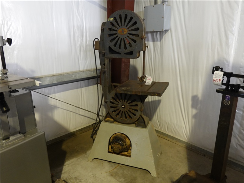 VINTAGE BANDSAW W/18" X 20" SLOTTED TABLE & 15" THROAT, 120V (LIKELY FROM 1930'S OR 1940'S)