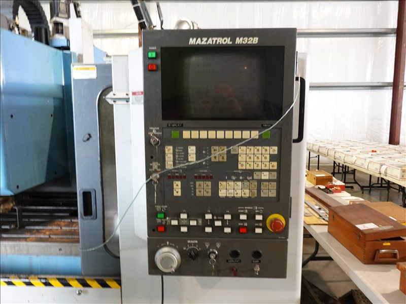CNC VERTICAL MACHINING CENTER, MAZATROL M32B CONTROLS, 57.4" X 16.2" T-SLOT TABLE, 24-STATION ATC, 7.5 HP SPINDLE, OILER, CHIP TRAY, 230/460V, 3 PHASE (NO REMOVAL BEFORE MONDAY, APRIL 28TH)